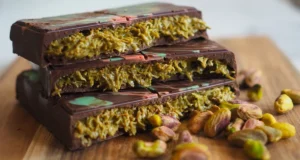 تکههای کادایف ترد در هر لقمه، حس تازه و بافت متنوع ایجاد میکنند. ترکیب شکلات شیری، مغز پسته و کادایف، تجربهای بینظیر از خرید شکلات دبی و خوردن شکلات ترک فراهم میکند.